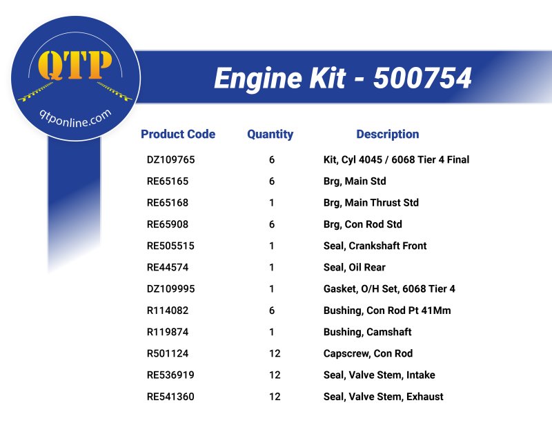 John Deere 6068H Tier 4 Engines - Con Rod R500335 - Piston RE544607